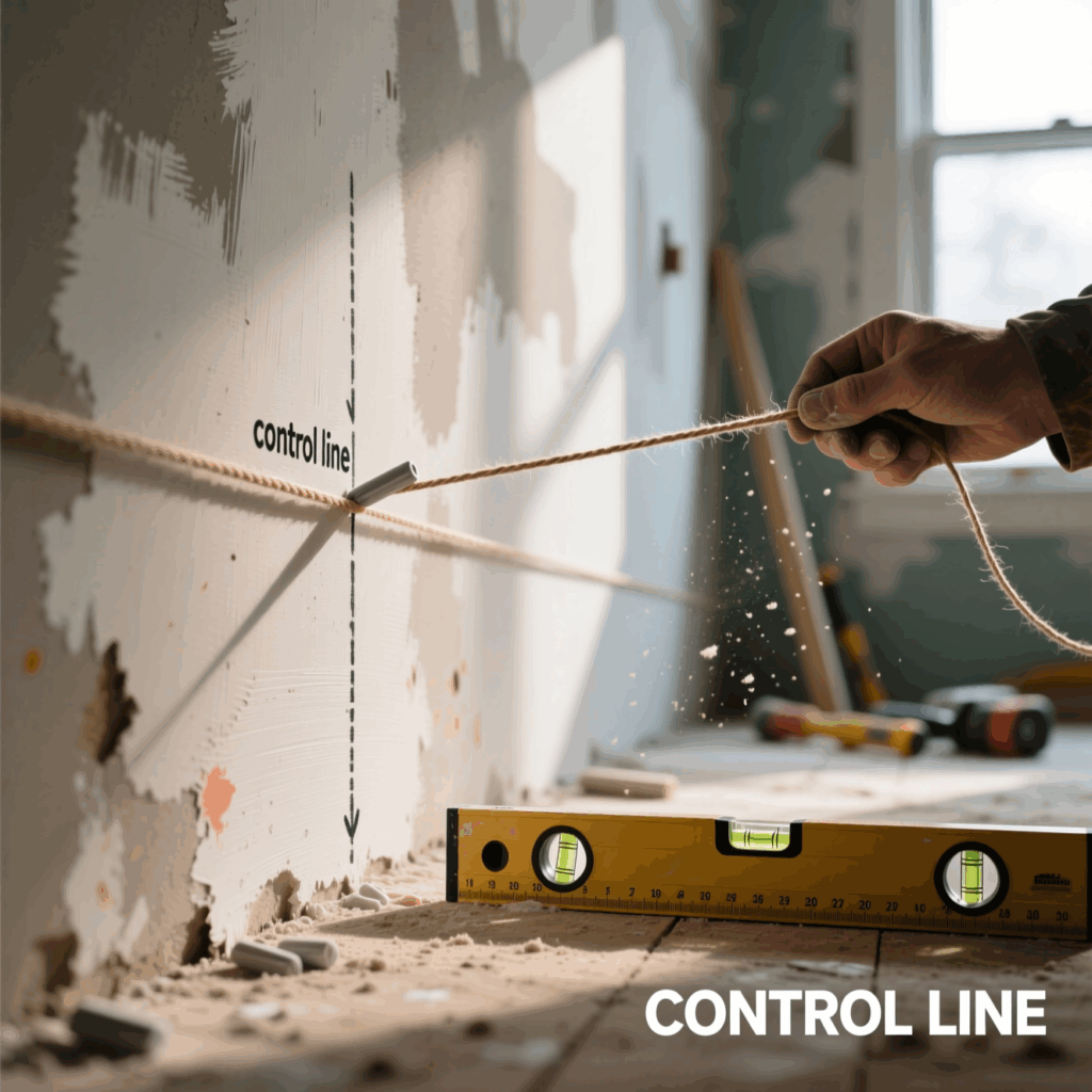 - На стенах проведите вертикальные и горизонтальные линии — используйте лазерный уровень.